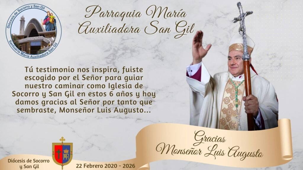 El Pasado Domingo de Pascua la Parroquia Santuario María Auxiliadora de San Gil manifestó su gratitud al Señor por el ministerio episcopal de Monseñor Luís Augusto Campos Flórez que durante 6 años guió a nuestra Diócesis de Socorro y San Gil.